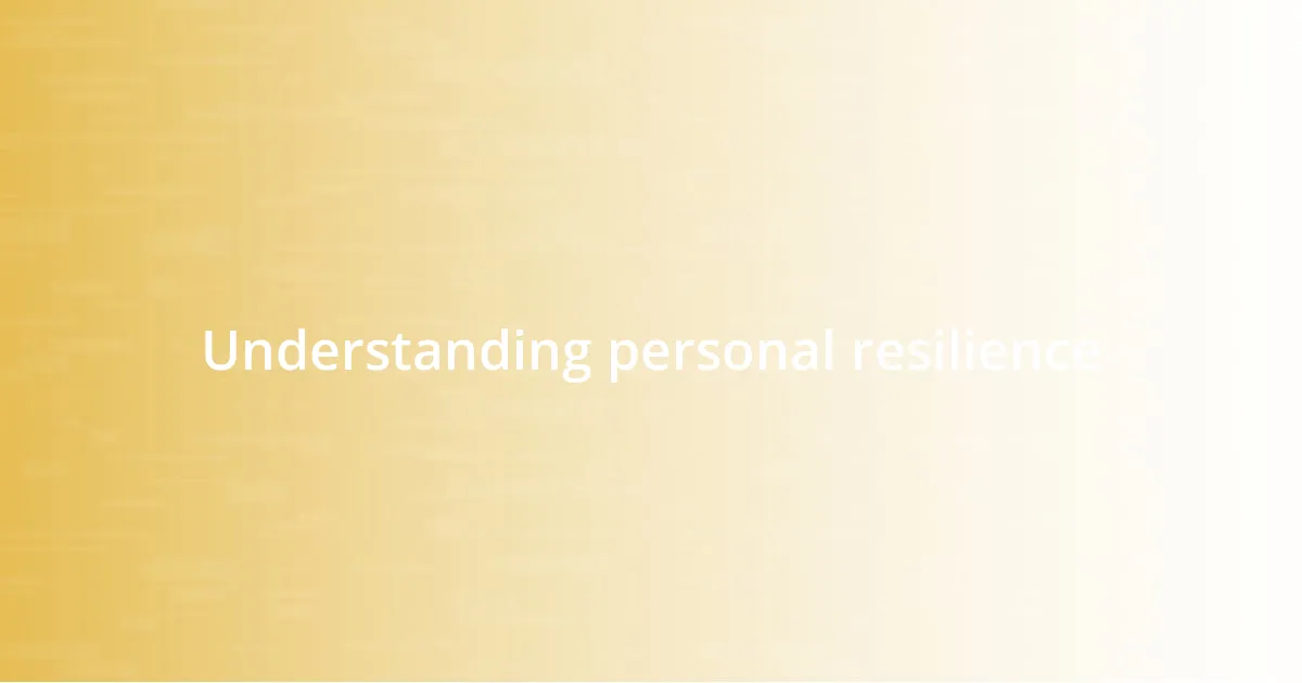 Understanding personal resilience is about recognizing how we recover from setbacks. I remember a time when I faced a significant professional challenge that felt overwhelming. I wondered, how could I bounce back from this? This moment taught me that resilience isn’t just about enduring; it’s about learning and adapting.